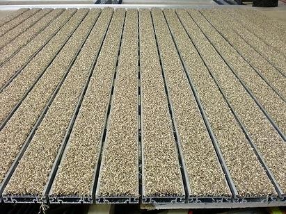 Questi zerbini​ con logo hanno​ una struttura fatta di profili di alluminio estruso, allineati in modo parallelo e quindi fermati per mezzo di cerniere. Tali cerniere, su desiderio del committente, possono essere punzolate o non drenanti, per facilitare il processo di pulizia e manutenzione.